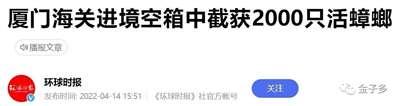 君不见,厦门海关截获装有2000只美洲蟑螂的空货柜箱?