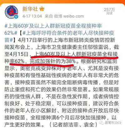 邬惊雷主任昨天说,截至目前,上海60岁以上老年人全程疫苗接种率为62%。(图1)