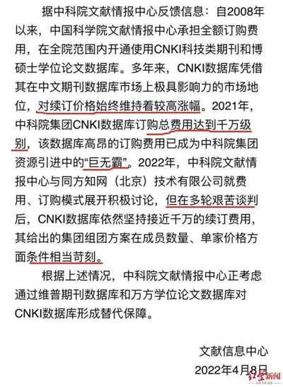 (知网索要千万续订费用,中科院瑟瑟发抖)