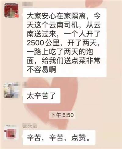 更令人感动的是,新疆喀什地区巴楚县人民驱车六天六夜,跨越万里驰援静安。运货的司机说:“这几天都在车上,不下高速地赶路,每天睡3个小时左右,饿了就吃馕,途中加了7次油。”
