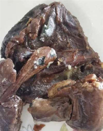 为什么要默念三声珍重呢?看这乌黑发亮的鸭肉,看这斑斑点点诱人的白霉,吃上一口让你喷到直接进入下辈子。