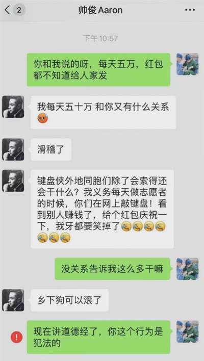 帅俊说自己一天只赚1万,自己上面的人一天30万,那么上面的上面呢?那些一天赚100万的,恐怕就不是“小虾米”能接触到了。现在想想上海疫情为何始终得不到控制,答案简直令人抓狂。这就是把人封起来剥削,这样发国难财的人,参与其中获利的领导,已经不是辞不辞职的问题了,他们这是在犯罪,被他们牺牲的则是上海的普通市民。而且上海疫情外溢,这群人造成的影响,已经扩散到全国,早已不是罄竹难书所能够形容。