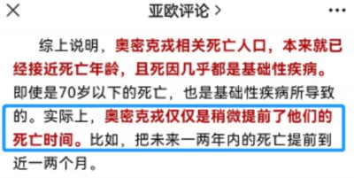 实话实说,我实在无法理解为什么会有人对老人的死亡那么“云淡风轻”,我更无法理解的是居然会有人说出“奥密克戎相关死亡人口,本来就已接近死亡年龄,且死因几乎都是基础性疾病。即使是70岁以下的死亡,也是基础性疾病所导致的。实际上,奥密克戎仅仅是稍微提前了他们的死亡时间”这样的话。这种人大概是从石头里蹦出来的,连人类起码的感情都没有吧。