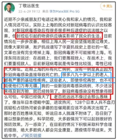 截至目前,上海疫情的死亡数据接近500,这实在是个令人悲伤的数字,就这样,居然还有人说,“近期上海的所有死亡病例,没有一例是真正因为新冠病毒感染导致死亡的。很多八九十岁以上的老人,都有严重的基础性疾病。这些老人,即使华佗再世,也不可能使他们万寿无疆”。