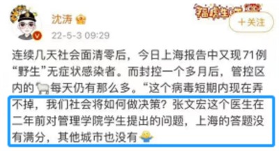 就在前两天,还有人说“上海清零:是一场伟大的胜利,还是失去了一个全民免疫的机会”“如果我们最终要回归正常,那么这次上海,答案就是既取得了胜利,也失去了机会”,话里话外都能看出来此人是力挺“与病毒共存”的,我只是好奇,此人有没有说服自己和自己的家人“接受确诊及死亡病例为日常的一部分”,介意不介意自己的孩子成为“新冠孤儿”呢。