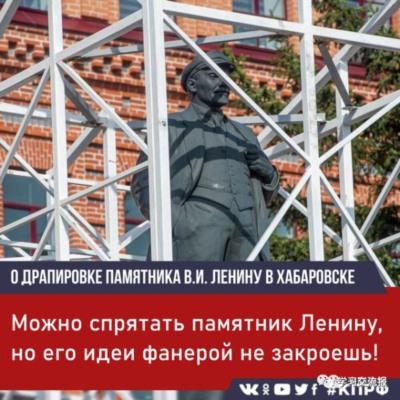 自称是苏联的“继承者”的俄罗斯,自然也不会错过这个日子,他们在今天如期举行了一场盛大的阅兵仪式。然而,笔者却看到了具有戏剧性的一个消息。5月4号,俄罗斯哈巴罗夫斯克当局将列宁的雕像“隐藏”了起来——他们将列宁雕像用铁笼封锁,并用宣传画将其遮蔽了起来。不仅是哈巴罗夫斯克,莫斯科地区的列宁墓也在胜利日前夕被人为的遮盖了起来。