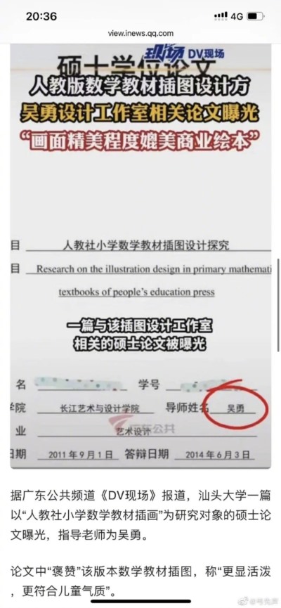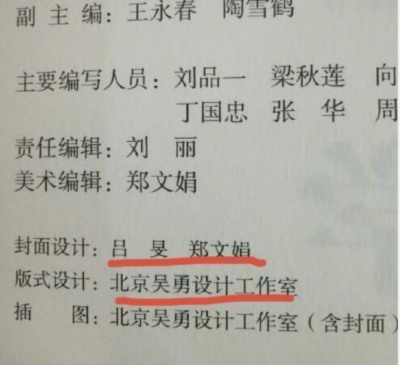 这些问题的背后是可怕的学阀现象。吕敬人是编写教材的艺术总顾问,而吴勇上学的时候是吕敬人的学生,在中国青年出版社工作的时候又是吕敬人的下属,所以,这次教材的封面和插图绘画,吕敬人不但找了自己的学生吴勇,还找了自己的儿子吕旻。还有郑文娟好像既是出版社的编辑,又是吴勇工作室的员工。乌合麒麟说可能是因为出版社给钱少,所以插图画得烂,乌合麒麟说的这种情况的确普遍存在,很多出版社对待普通画手比黄世仁还狠!但是,吴勇可不是普通画手,吴勇可是吕敬人的亲学生,吴勇把插图画成这样,很可能恰恰就是因为给的钱太多了。其实,道理很简单,方方写《软埋》,是因为给钱少吗?方方写《武汉日记》,是因为给钱少吗?恰恰就是因为给钱多,所以才写啊!