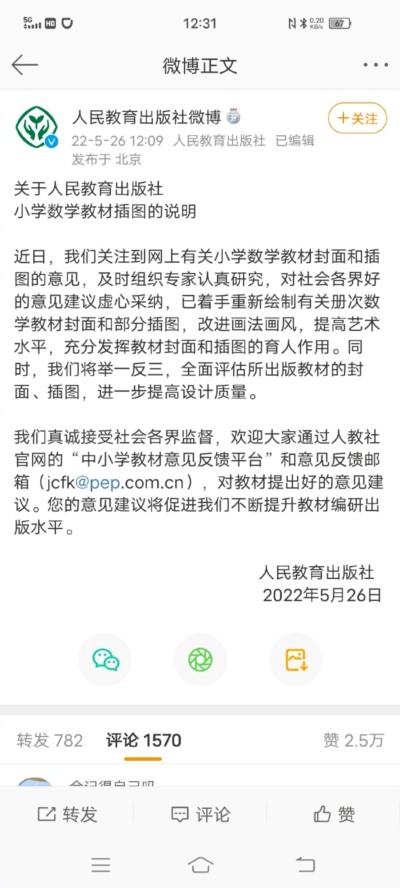 这些教材插图在网络上引发争议以后,人民教育出版社终于出来做了回应,但是,人民教育出版社的回应避重就轻,只说是插图的画法画风有问题。出版社的美术编辑,责任编辑,副主编,主编,这么多人审核校对,标点符号错了都能发现,画得这么丑,真的没有人发现吗?出版社的人为什么要为这些插图一路开绿灯呢?出版社的相关责任人难道不应该被处理吗?
