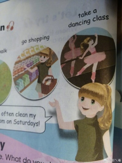 美术编辑同样是郑文娟,英文教材的插图,明显比数学教材的插图好看多了。