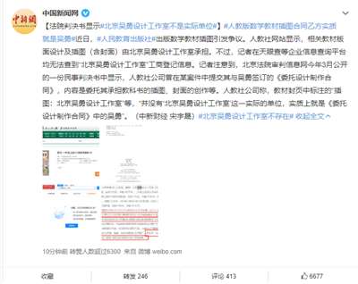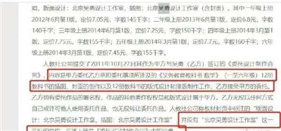 更重要的是,据北京法院审判信息网今年3月公开的一份民事判决书中显示,人教社公司曾在某案件中提交其与吴勇签订的《委托设计制作合同》,内容是委托其承担教科书的插图、封面的创作等。