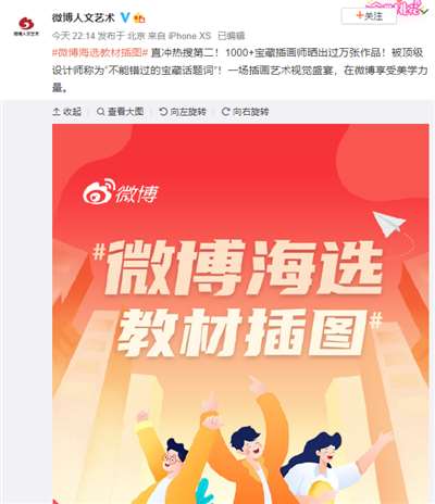 微博很给力,其“微博人文艺术”还做了个“微博海选教材插图”,冲上热搜第二。称有超千名画师无私奉献出过万张作品,是一场插画艺术视觉盛宴。