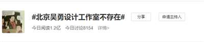 比如#北京吴勇设计工作室不存在#话题不到一天,阅读量就高达1.2亿。