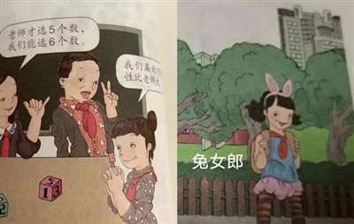 真的没想到,这些年,我们使用的小学教材里,竟然出现一大批穿成兔女郎、涉嫌赌博、腿上纹身、表情呆滞还吐舌头的“痞里婊气”儿童。