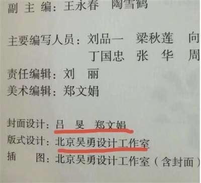 但如此憧憬西方“自由化”、“市场竞争”的师徒二人,却被扒出在这次人教版设计项目中,吕敬人的儿子竟然出现在了负责封面设计的人员名单中。