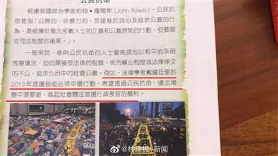比如,将违法占中行为,美化成“追求心中的社会公义”。