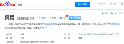 而百科已经将吴勇的介绍从“著名设计师”变成了“平面设计师”。