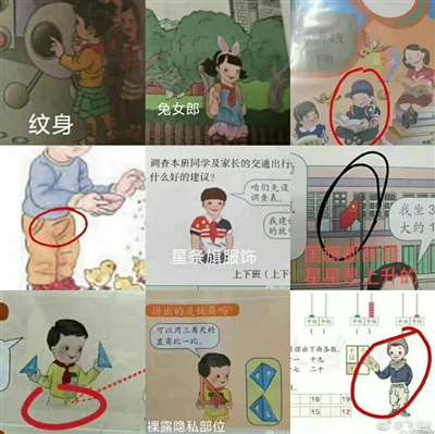 近日,人教版小学数学毒教材插图崇洋媚美、人物病态丑陋猥琐、故意突出儿童下体的问题引发众怒。