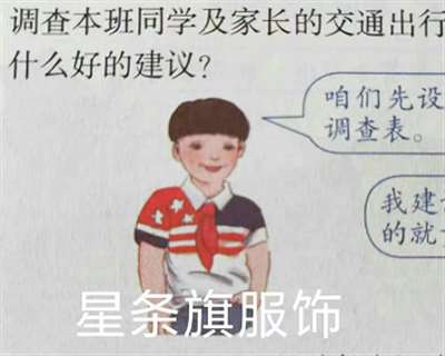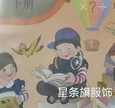 咱不是说现实中孩子不可以自己选择穿着,但作为教材插画上的“学生一般形象”,竟设计成美国国旗元素同红领巾的吊诡搭配,敢问画师是何寓意?