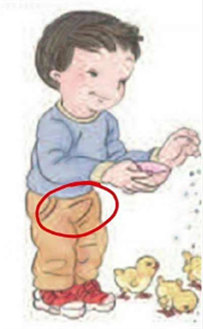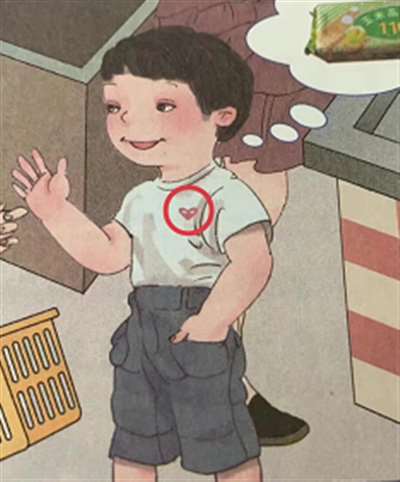 这张插图乍一眼看,男孩并未穿裤子,男孩生殖器一览无余;也有说法称,这个男孩其实穿着裤子,但仍然被画出了下体的形状。