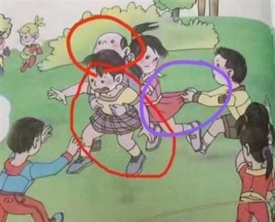但不管是哪一种,男孩隐私部位都暴露无遗,在并非生理学科的教材上堂而皇之地出现,简直令人瞠目结舌。