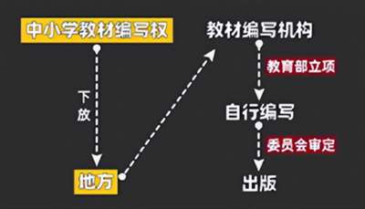 自此由教育部开始立项,然后地方的教材编写机构可以自行编写,再由相关审定委员会审定,审定合格后就可以出版了。
