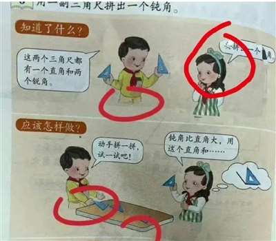 这几天,人教版数学教材里的插图引起轩然大波,插画中所画的小朋友,几乎都是宽眼距、塌鼻梁、微微张着嘴巴的唐氏综合征样子。
