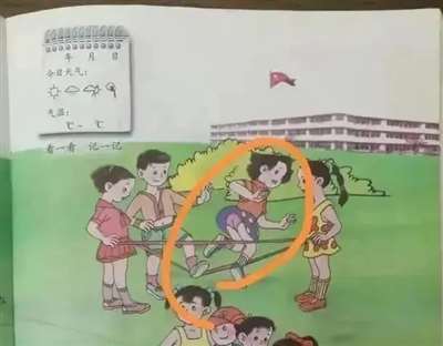 第一,如此露骨的隐私部位裸露、性暗示插图出现在小学课本中,中国儿童从进入校园第一天起就开始接受这样的“启蒙”教育,这会对他们的心理健康和思想产生什么影响?这种心理启蒙和性暗示对他们未来身心健康会产生什么影响?作者使用这种畸形的、色情的甚至带有某种挑逗的方式对我们的孩子进行这种“启蒙”教育,是要达到什么目的?我相信,作者在教材插图中使用孩子性暗示的画面绝不是无意识的,而是有意在传达某种心理暗示和价值观表达。