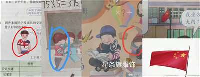 第三,其中一幅图中将中国国旗中的五星错位,这仅仅是一种无意识的错误吗?我最哀叹的是,这面五星错位的国旗竟然在我们的小学课本中存在了十年却没有一个人指出错误并加以改正,十年中有多少孩子对我们的国旗产生了错误认知?另一个严重错误是其中一幅插图中的孩子穿的衣服上竟然印着美国国旗,一方面将中国国旗倒挂,一方面让中国孩子穿印有美国国旗的衣服,我们的教育就是这样进行爱国主义教育的吗?