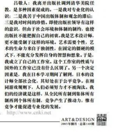 吕敬人对于我国当下的制度是非常不满的,2005年就认为我国的制度限制了他的才华,无独有偶,他的弟子吴勇也这样认为。