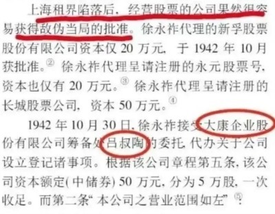 但经过网友调查考证发现,在日本侵华战争期间,上海陷落后,吕叔陶日伪统治下注册了一家“大康企业股份有限公司”。