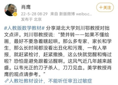 终于,清华教授肖鹰跳出来为”毒教材“喊冤了。