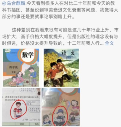 审核人员的审美标准有问题吗?九年义务教育课本上的插画,可不止给一个审核人员来审,三校三审,印成样品后还要继续审。结果,这过程中一连串的审核人员都认为“画的还挺好看。”