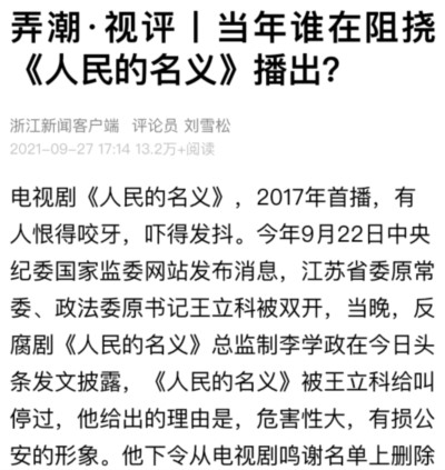 界线这东西真的很神奇,《人民的名义》总监制说,2017年该电视剧曾被某大官王立科强烈干预播出,甚至动用他自身的影响让其停播,更严厉批评了有关部门对该电视剧拍摄工作支持的行为。