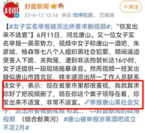 唐山的动作不可谓不迅速,但还要警惕个别人有“捂盖子”的错误思想。如女子实名举报被派出所要求删除视频,理由竟是“你发出来不适宜”,这真是让我大开眼界,都这个时候了,居然还有人想掩耳盗铃。恕我直言,群众不是傻子,在全民关注的背景下,什么“市领导”都是虚的,更不要说,这不是在帮领导“分忧”,这是在把领导往火里推啊。