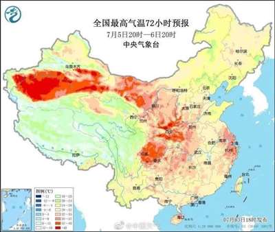 ①6日开始高温迅速发展,四川盆地、西北地区东部、江汉、华北、黄淮、江淮、江南等地最高气温将达35~37℃,局地40℃左右。