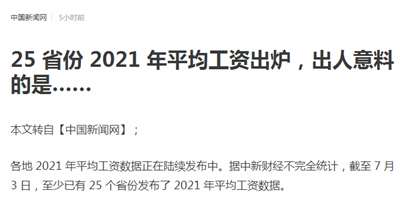 2、25省2021平均工资出炉