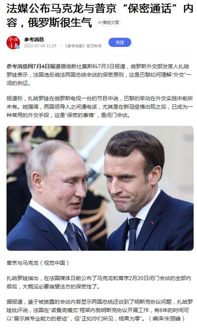 12、法媒公布马克龙与普京“保密通话”内容,俄罗斯很生气