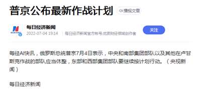 中央和南部集团部队以及其他在卢甘斯克作战的部队应当休整,东部和西部集团部队要继续按计划行动。