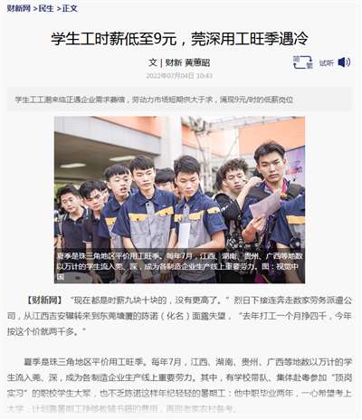 1、学生工时薪低至9元,莞深用工旺季遇冷