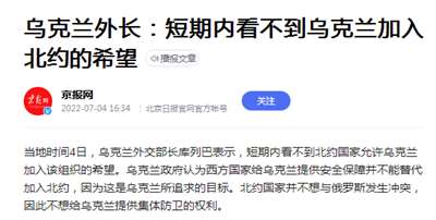 16、乌克兰外长:短期内看不到乌克兰加入北约的希望