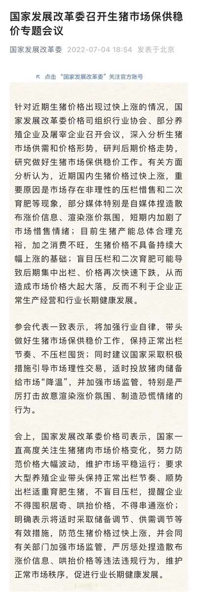 4、国家发改委回应生猪价格出现过快上涨