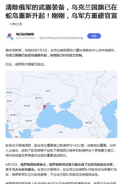 14、乌克兰国旗已在蛇岛重新升起,该地区已归乌克兰控制