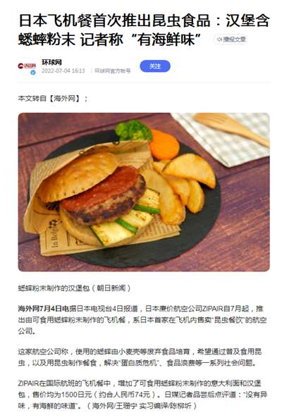 26、日本推出蟋蟀粉末飞机餐