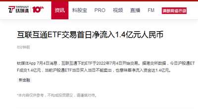 7、互联互通ETF交易首日净流入1.4亿元人民币