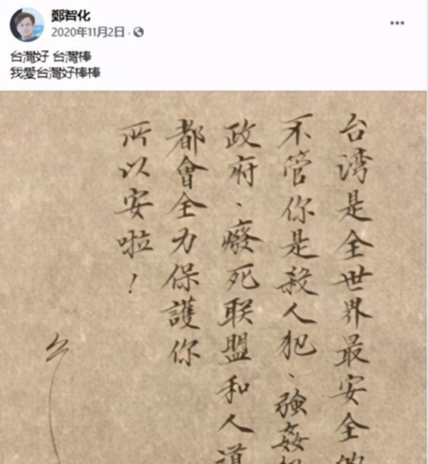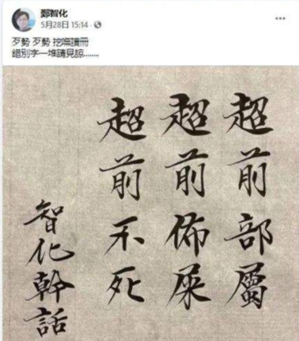 面对抗疫无能的蔡英文和一帮虚伪的政客,还有轻狂无知的“绿粉”,郑智化在facebook上怒骂:“没有自觉能力的呆丸人”,还附赠了一副书法: