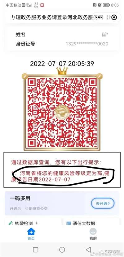 第2步是怎么在技术上实现?我怀疑他们是把这群村镇银行储户设置为了境外人员,放在境外人员库里,于是健康码就全
