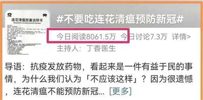 而在今年4月,上海用中医药积极抗疫时,“丁香医生”在其公号、微博上同步发文《不要吃连花清瘟预防新冠》,发起了一场规模极大的对连花清瘟的围剿。