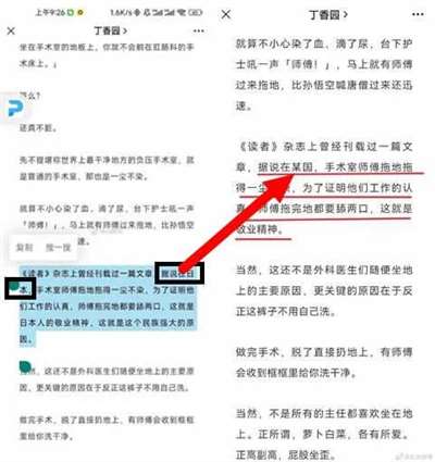 7月25日,丁香发文称《读者》杂志上曾经刊载过一篇文章,据说在日本,手术室师傅拖地拖得一尘不染,为了证明他们工作的认真,师傅拖完地都要舔两口,这就是敬业精神。