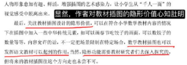而“学生导师”吴勇指导的以“人教社小学数学教材插图设计研究”为题的硕士论文,清楚地注意到了:“教材插图设计的隐形价值”、“数学教材插图也可以发挥语文教材可以起到的作用”:
