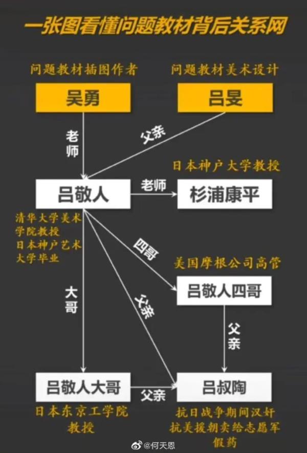 除了上面提到的很清楚“教材里的一幅图可能影响学生一辈子”的人教社总编辑郭戈等人,还有毒教材封面设计者吕旻,其父吕敬人也担任了“统编教材的艺术设计总顾问”,吕氏父子还共同持股一家公司,其中吕敬人担任监事,吕旻担任法定代表人。